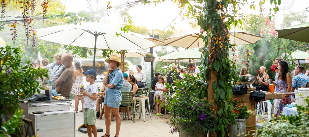 Besides our lush indoor areas, our outdoor area also provide protection from the weather with an undercover deck, and umbrellas on the lawn.